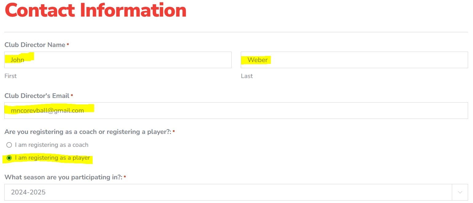 Participant Information: Please complete the remaining information as it pertains to the player