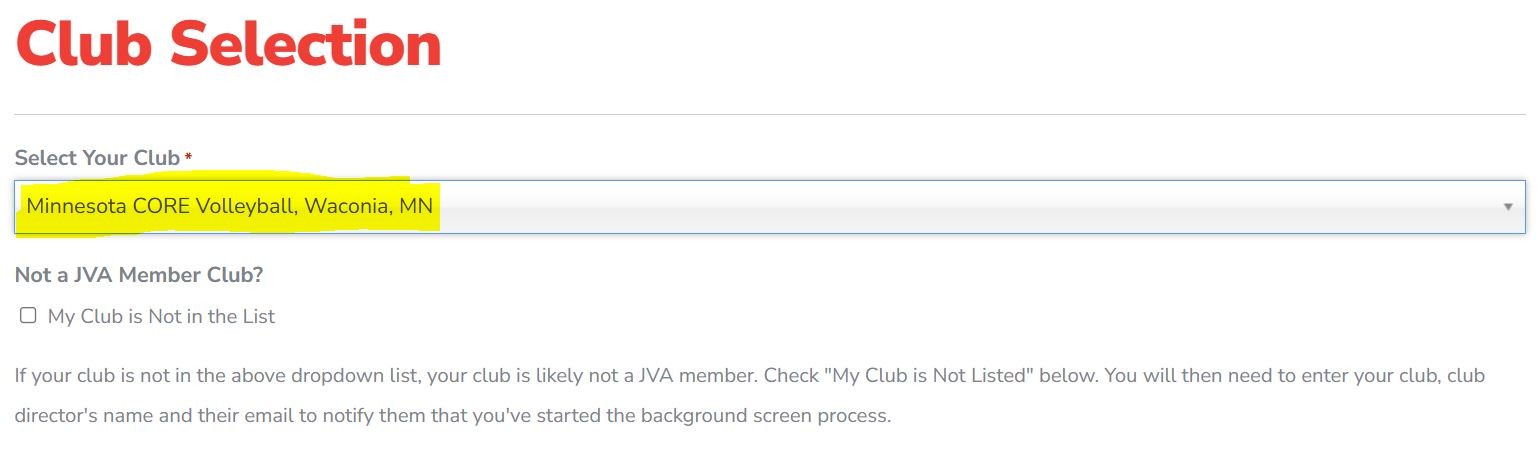 Club Selection: Please make selection noted below